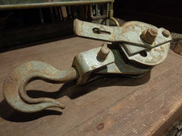 - 【アイアンの滑車】井戸鉤フック鉄製骨董インテリア古民具箪笥オブジェ釣瓶ロープ車輪古道具アンティーク骨董インダストリアル鶴瓶歯車