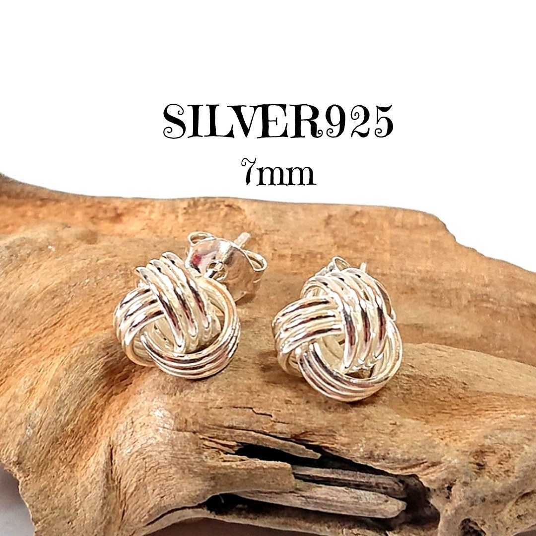 > 5614 SILVER925 糸巻きボールピアス 大 7mm玉 シルバー925 シンプル ワンポイント ユニセックス 丸 毛糸 手毬 ワイヤーワーク お洒落