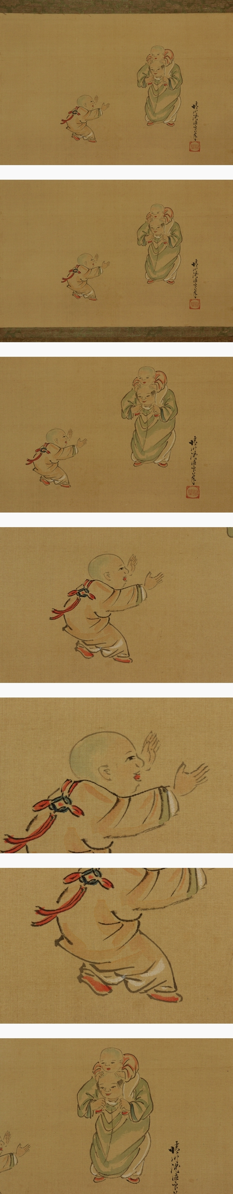 - 【真作】狩野伊川院【唐子図】◆絹本◆合箱◆掛軸 u04096