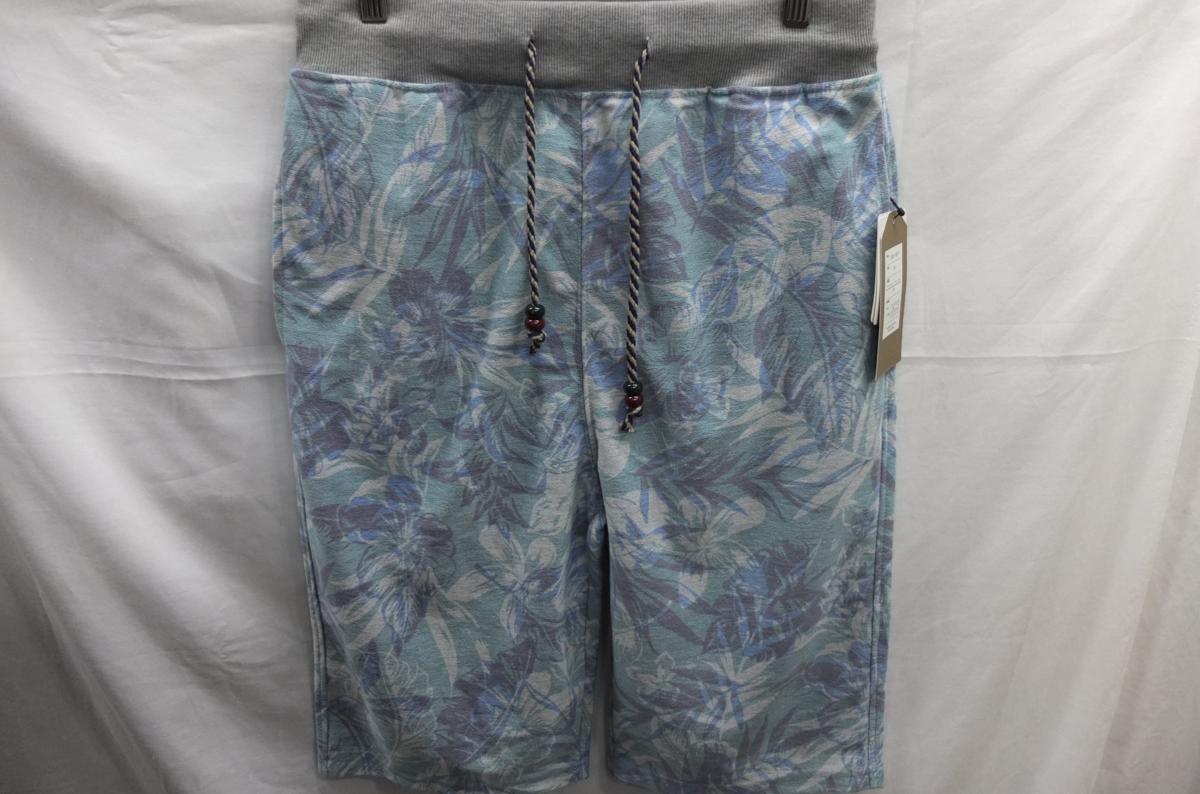 > ★送料割引!ショートパンツ ルームパンツ ウエストイージー トロピカルフラワープリント ミニパイル M 青緑 EXCUSE★未使用格安!