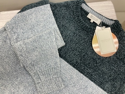 > ★送料割引!セーター モールニット クルーネック 2トーン 紺青 LLサイズ CREATION CUBE★未使用格安 !