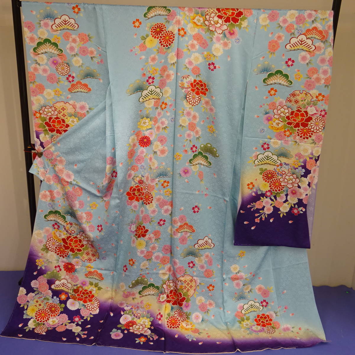 - 新品・未仕立て・正絹★友禅振袖★水色地に鞠と花柄です