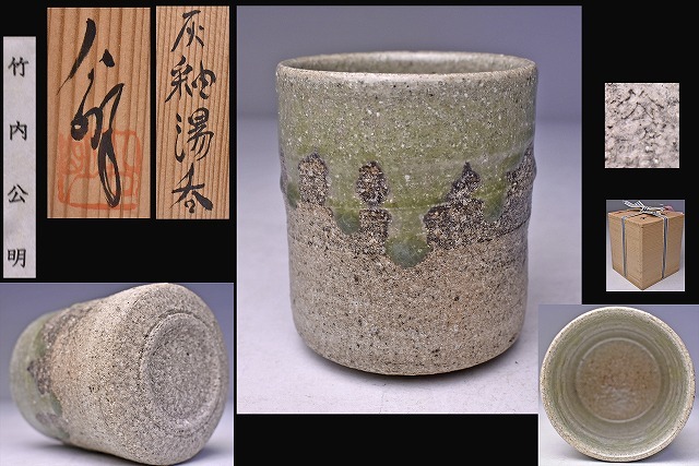 > 竹内公明 ★ 灰釉 湯呑 ★ 共箱 栞 ★ 師: 江崎一生 ★ ビードロ釉が美しい逸品 ★ 常滑焼 ★ 検 大迫みきお ★2