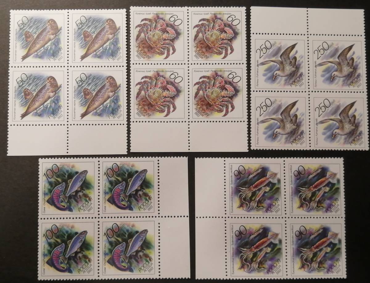 - ソ連 海洋生物(1種(4枚)ブロック×5) MNH