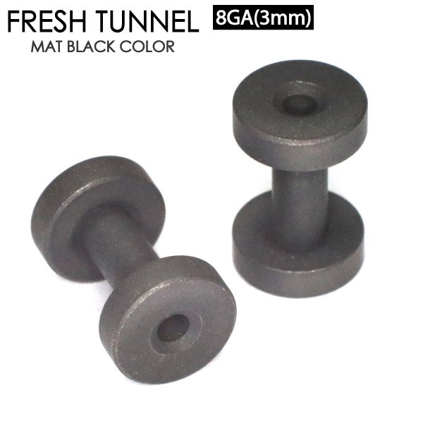 - フレッシュトンネル ブラック マット 8ゲージ(3ミリ) BLACK シンプル デザイン サージカルステンレス ボディピアス イヤーロブ 8G (3mm)┃