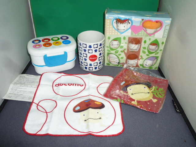 - b非売品★未使用★docomoドコモダケ クリーナー ストラップ ぬいぐるみ 家族8体セットと湯呑み他5点