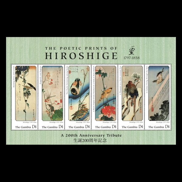 - ■ガンビア切手 日本画 / 花鳥風月 歌川広重 200周年 6種シート 02