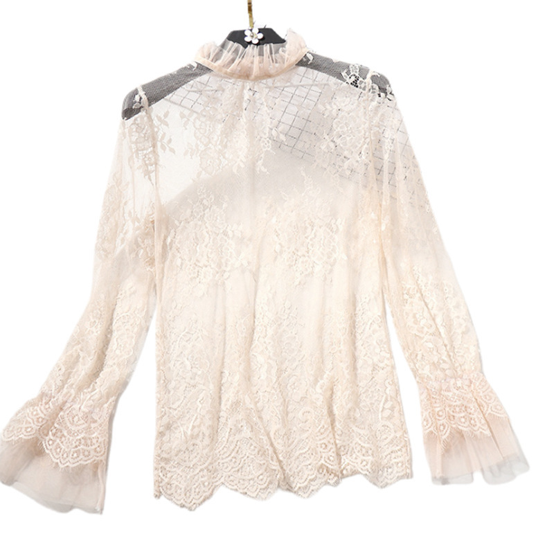 - 新品●送料無料●ベージュ ●ハイネック 総レース透けカットソー ネットトップス 重ねトップス
