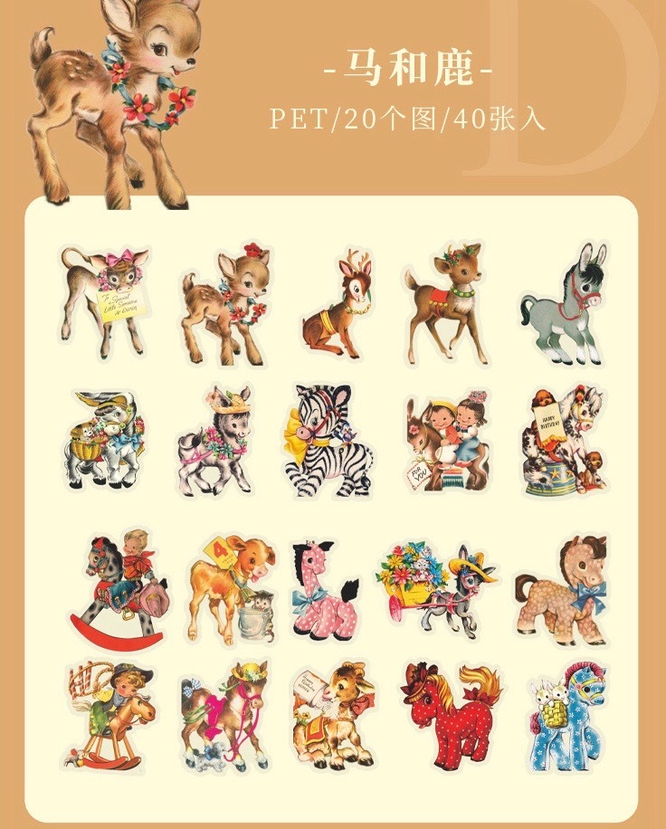 > ◆海外ステッカー フレークシール No27-1 レトロアニマル かわいい動物 D・Deer 鹿 手帳・日記・ジャンクジャーナル・コラージュに