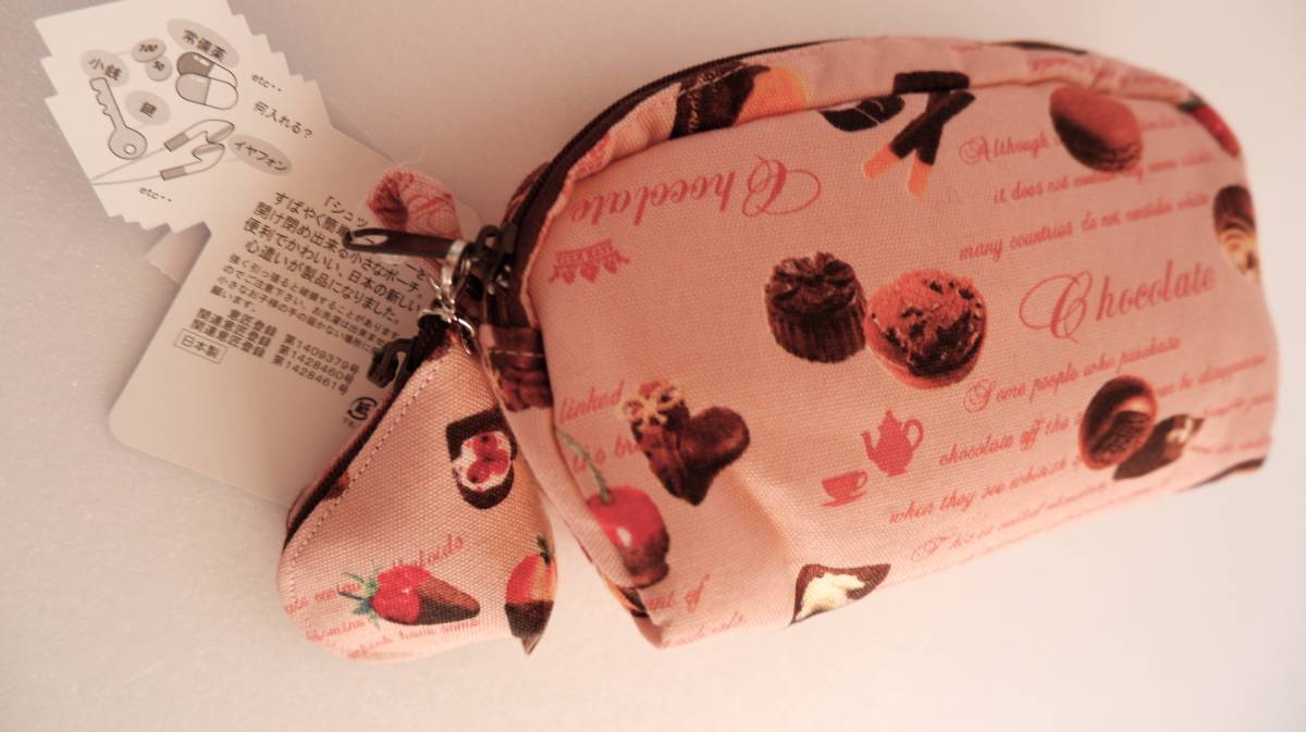 - 新品 スイーツ柄 小銭入れ付き ポーチ 斜めファスナー ふんわりポーチ