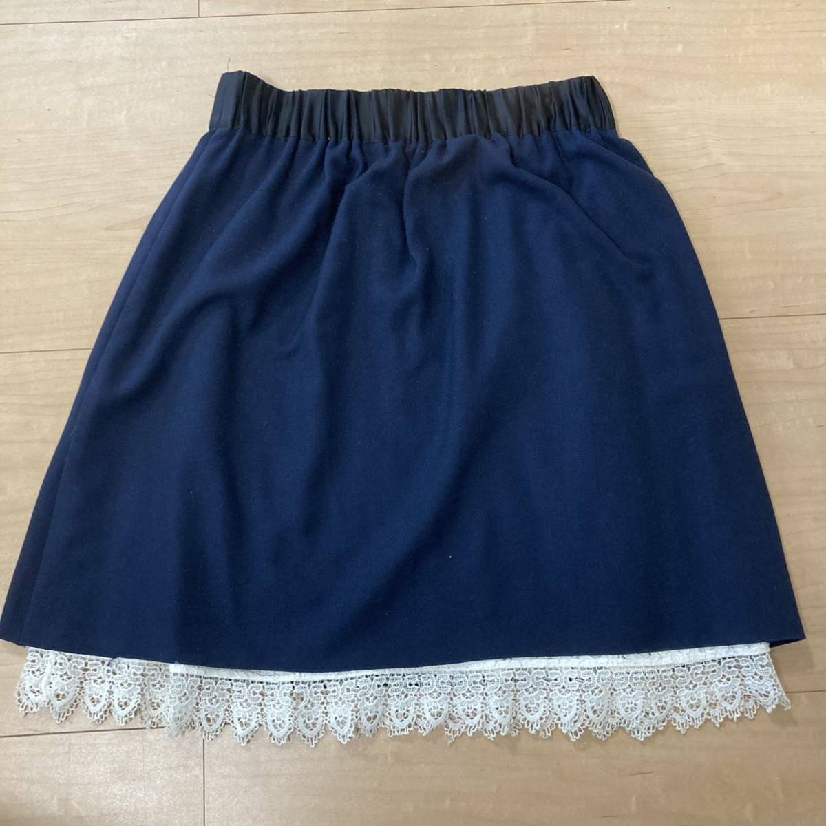 - クイーンズコート QUEENS COURT リバーシブルスカート サイズ2 紺色 白レース