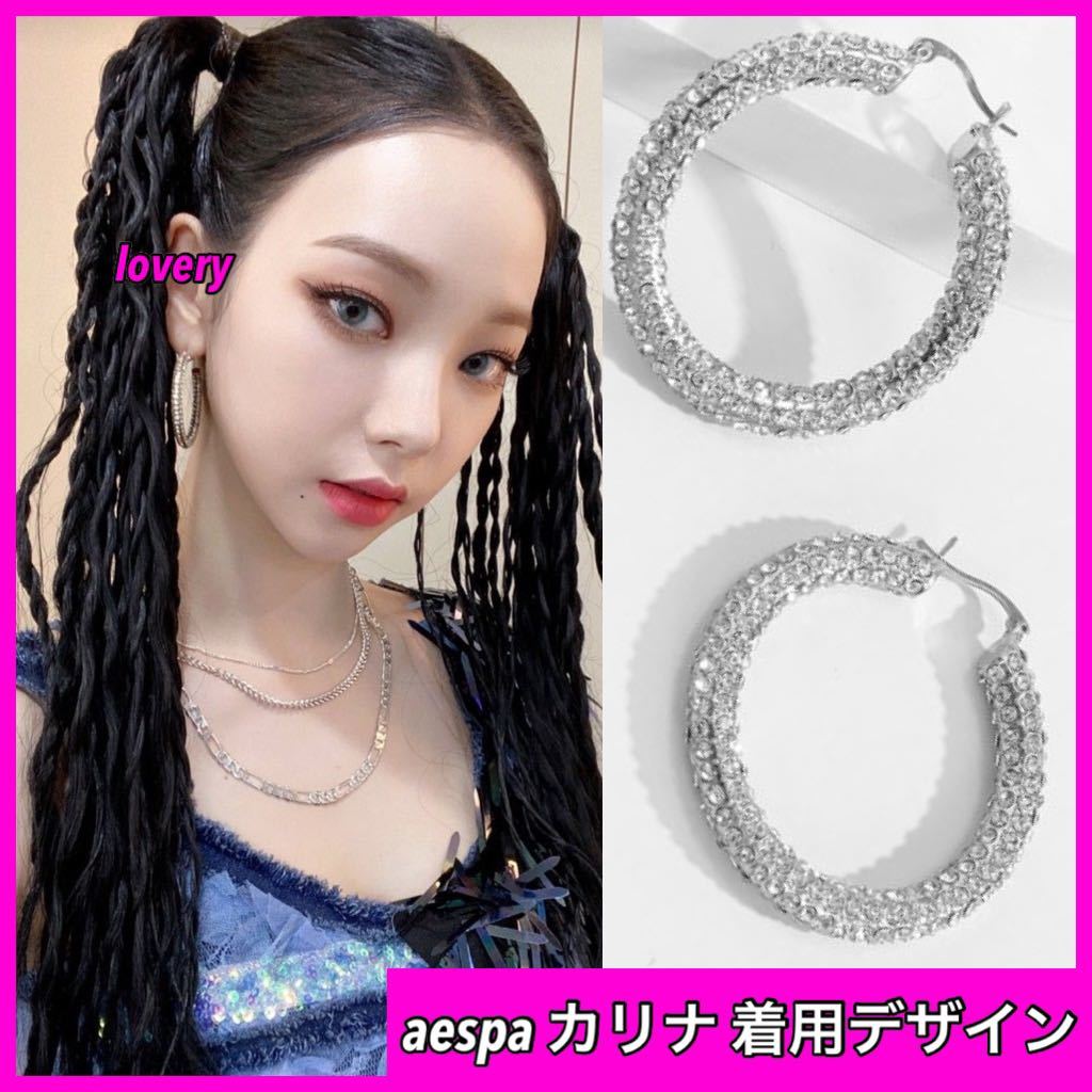 > aespa カリナ 着用デザイン キラキラフープビシューピアス フープピアス 韓国ファッション 韓国アイドル リングピアス ビシューピアス