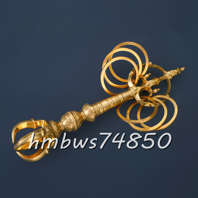 - 「密教法具 寺院仏具」極上品 五鈷型 錫杖 仏具 仏教美術 真鍮製 磨き仕上げ 長さ27.5cm