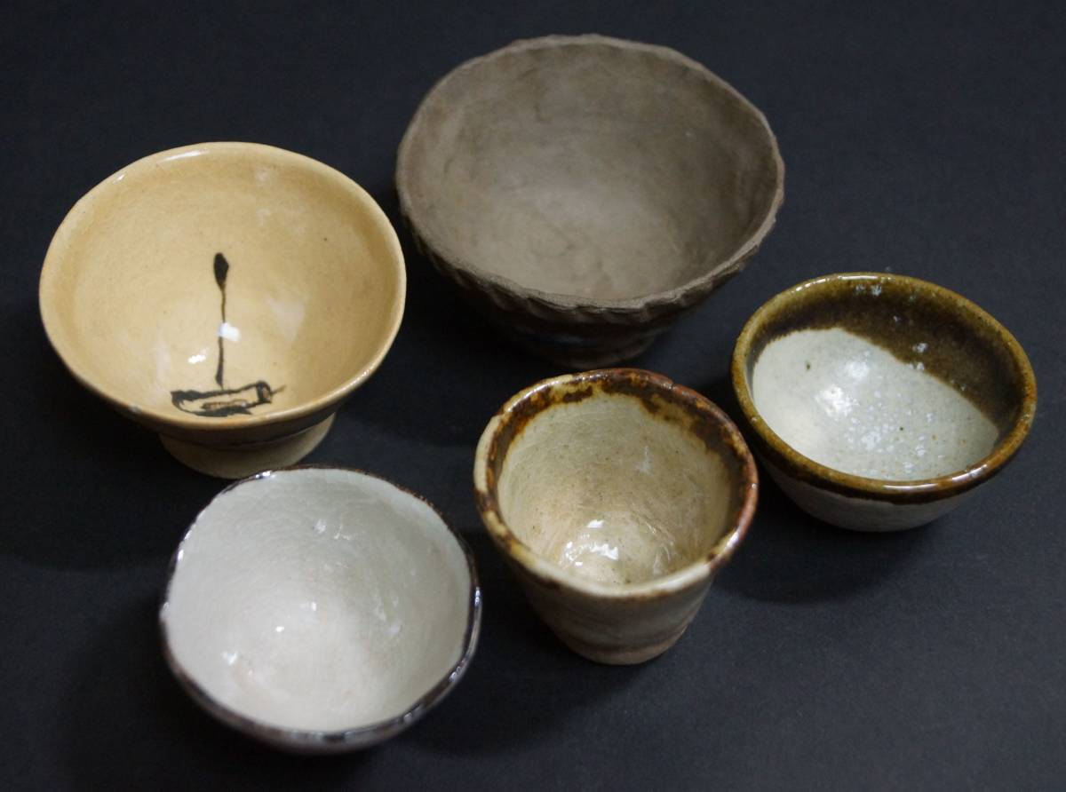 - 【閑】時代 手捻り煎茶碗(5客)盃揃い☆4D0803 ■