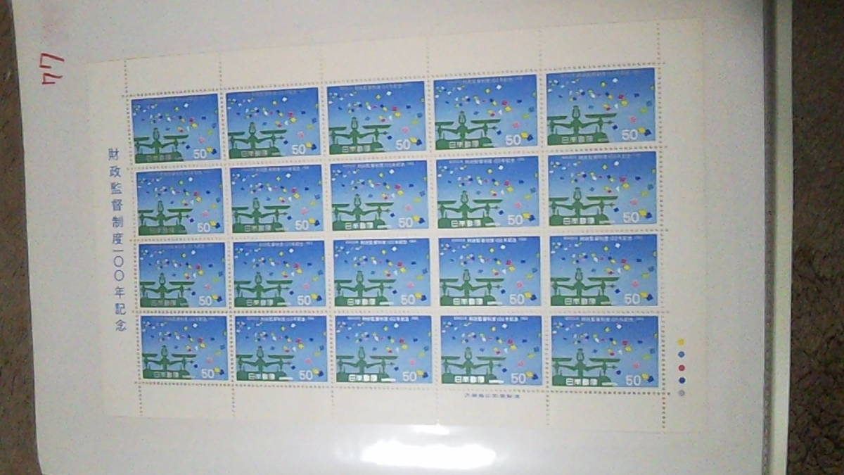 - ..未使用切手 財政監督制度100年記念 50円×20枚シート 1980年