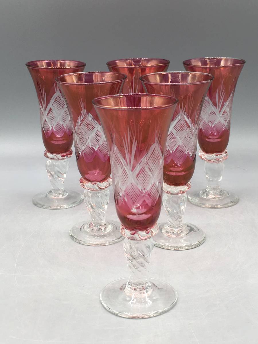 - クランベリー レッド シェリーグラス 6個 コップ グラス (784)