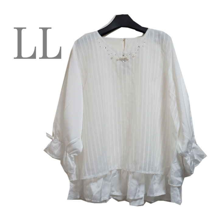 - ●新品/プルオーバー/ブラウス/ビジュー/裾フリル/LL/レディース●f8946