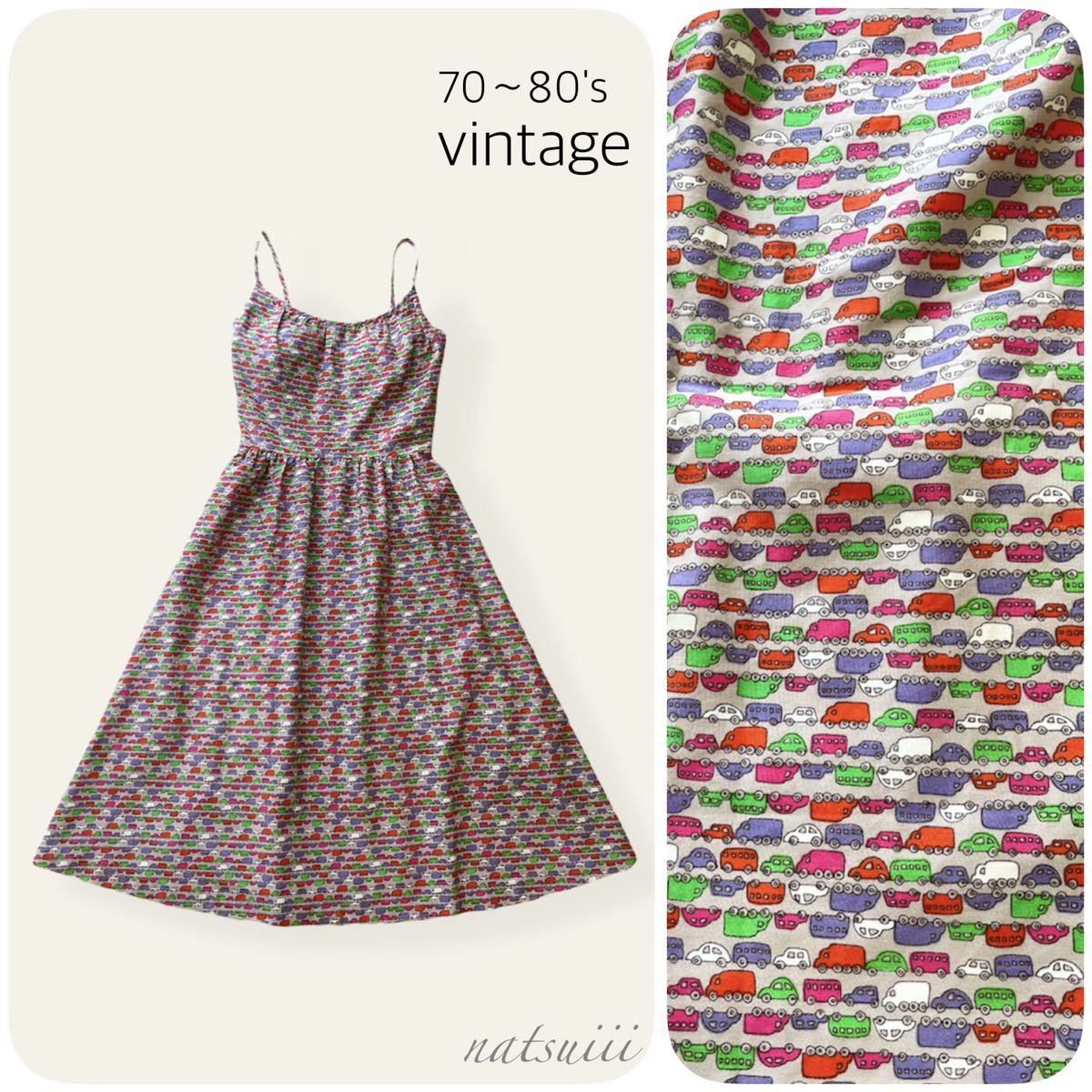 - used vintage 古着 レア ヴィンテージ 総柄 車 プリント Malia キャミソール ワンピース 送料無料
