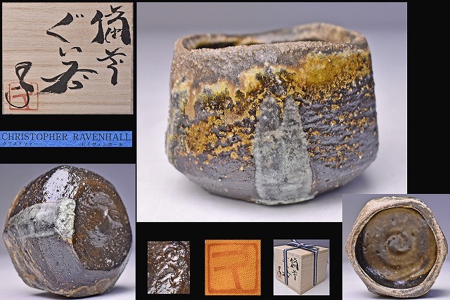 > クリストファー レイヴェンホール ★ 備前 ぐい呑 ★ 共箱 共布 栞 ★師:多久守★面取の造形素晴らしく景色抜群★ Christopher Ravenhall