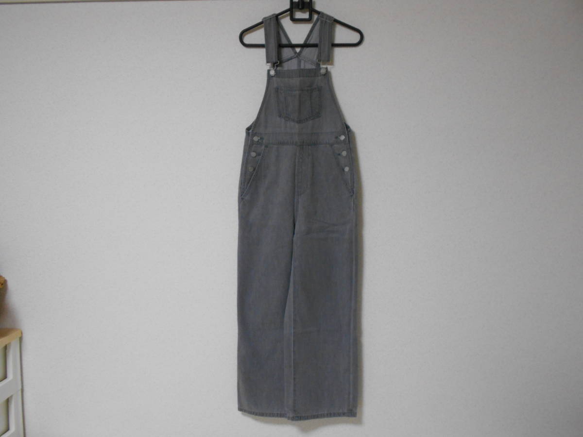 - GUジーユー☆薄いブラックデニム☆淡グレーのオーバーオール☆ゆったりルーズ♪大きめサロペット☆色あせビンテージ加工☆Sサイズ☆美品