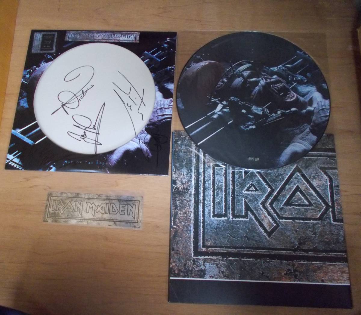 > 12EMPD 398 IRON MAIDEN アイアン・メイデン MAN ON THE EDGE UK版ピクチャーレコード 直筆サイン入り 未使用 おまけステッカー