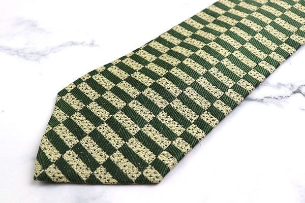 - 498円~ダーバン 格子柄 ブランド ネクタイ メンズ グリーン ベージュ 良品