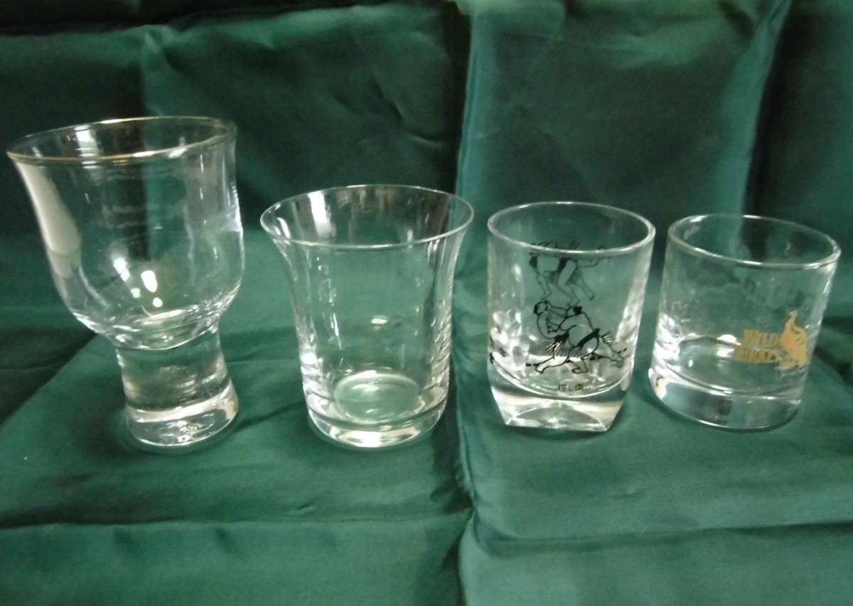 - ぐい呑み 色々 4客 硝子製 相撲柄 WILD TURKEY ガラス 日本酒 酒器 冷酒 ショットグラス お猪口 盃 杯 工芸品 レトロ