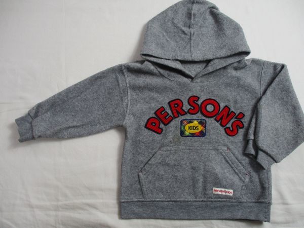 - BE450【PERSON'S KIDS・パーソンズ】ロゴ刺繍 ワッペン パーカー 訳有 男児 淡黒 95