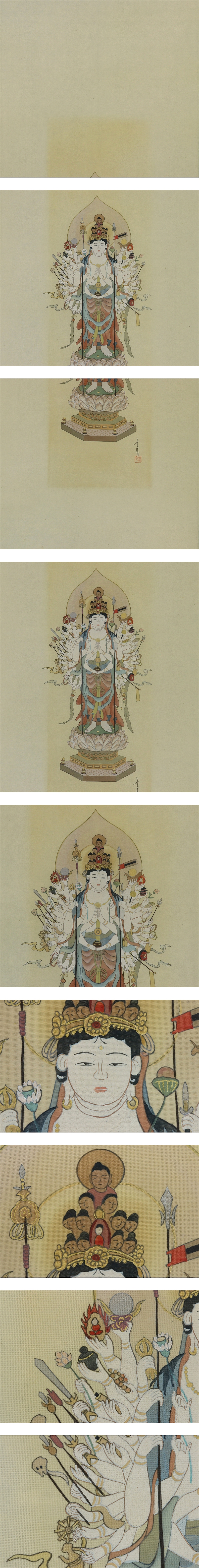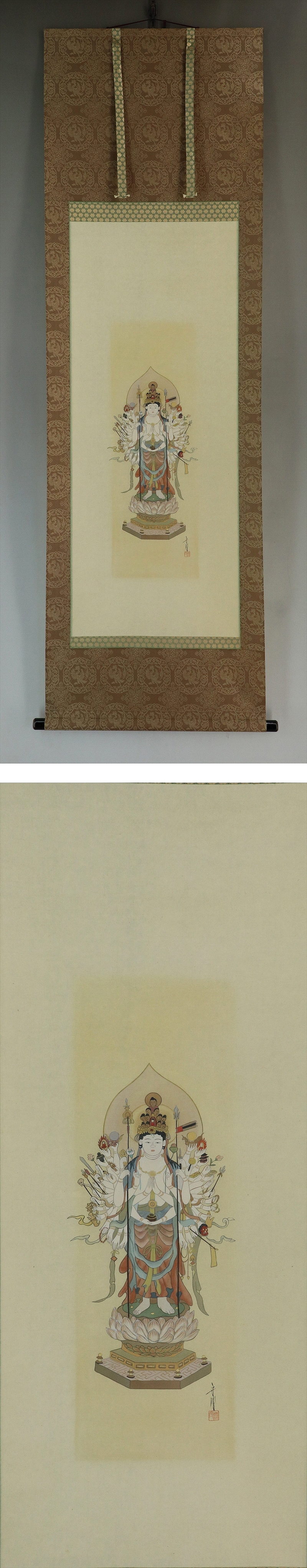 - 【真作】小野守鳳【千手観音】◆絹本◆掛軸 u05156