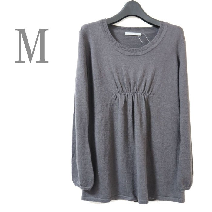 - ●新品/チュニックニット/チャコールグレー系/M/ギャザー/アンゴラ混/レディース●f5023