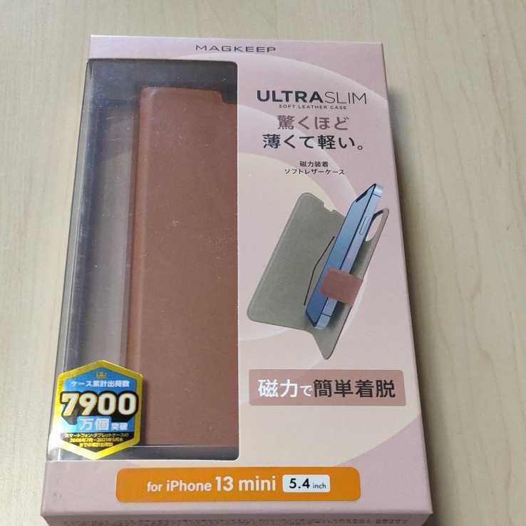 - ◎ELECOM PM-A21APLFUMBR [iPhone13 mini用 手帳型ケース フラップ レザー ブラウン]