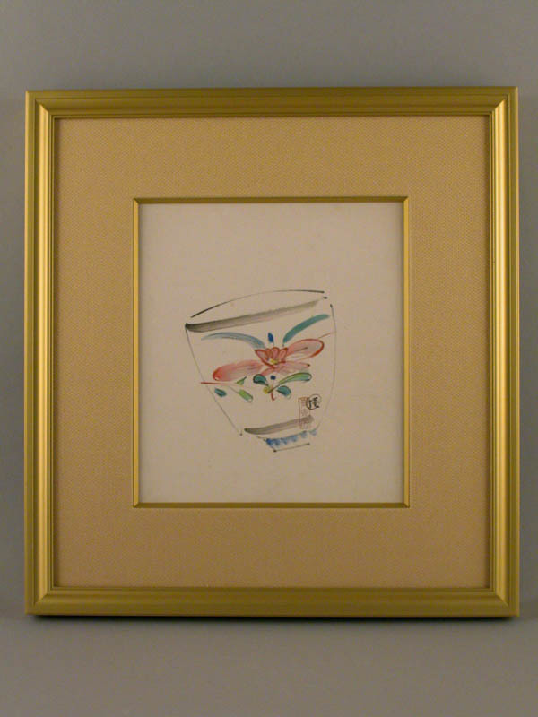 - 九谷焼巨匠作家 珍品 北出搭次郎 「湯呑之図」 色紙