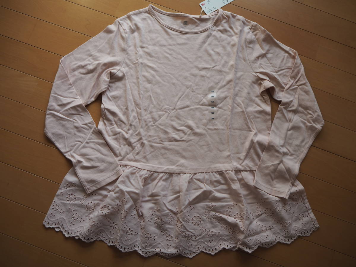 - ユニクロ☆裾カットレースカットソー♪サイズ160☆新品