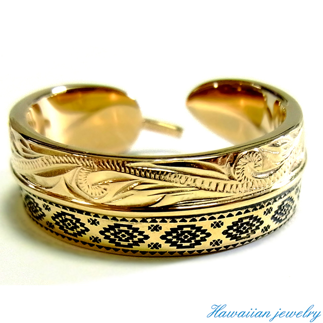 > ★人気★ハワイアンジュエリー★アレルギー&海水浴&温泉OK★K14コーティング★ステンレスゴールドフェザーリング★オルテガ柄&ハワイアン柄