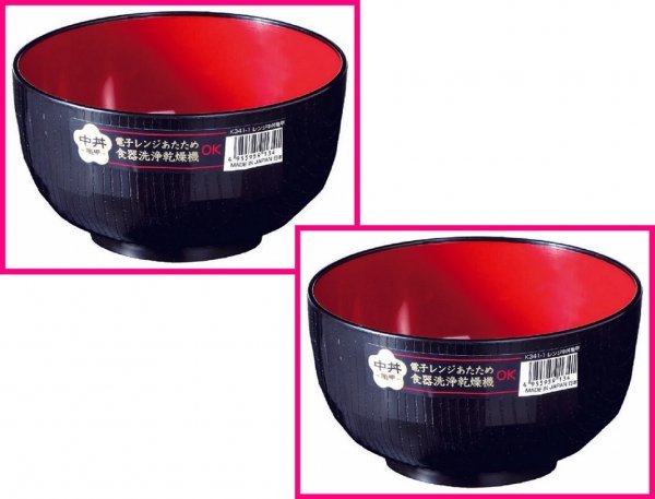 > 【送料無料:どんぶり:2個:日本製】★丼:亀甲 中丼:13.8cm★電子レンジ/食器洗浄乾燥機対応:黒内朱色:2客★No23b:DS:4114 丼ぶり 椀