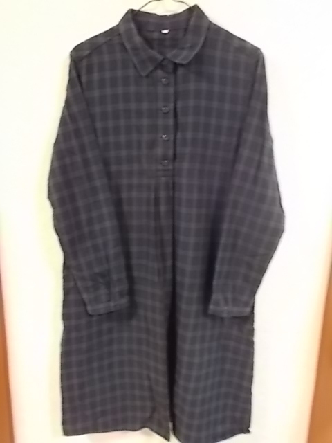 - 無印良品 MUJI シャツワンピース サイズL グリーン系チェック