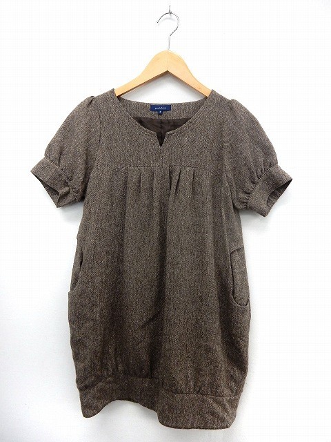 > プーラフリーム pour la frime ワンピース 膝丈 半袖 キーネック ウール シンプル S ブラウン /ST37 レディース