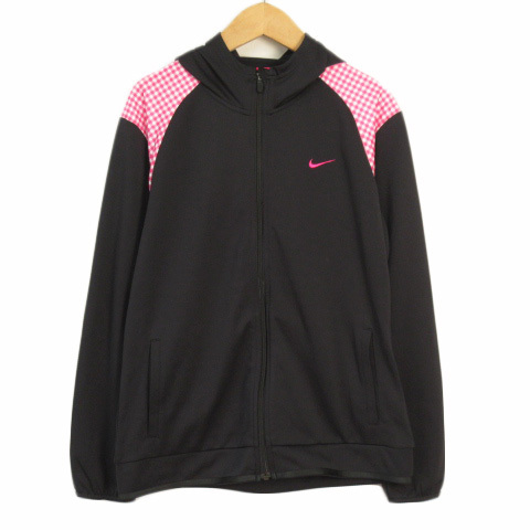 > ナイキ NIKE DRI-FIT ジャケット ジャージ チェック M 国内正規 黒 ブラック ピンク レディース