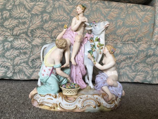 - マイセン フィギュリン エウロパの誘拐 Meissen 大型 雄牛 ボタン剣 1級品 フィギュア Die Entfuhrung der Europa エウロパと雄牛