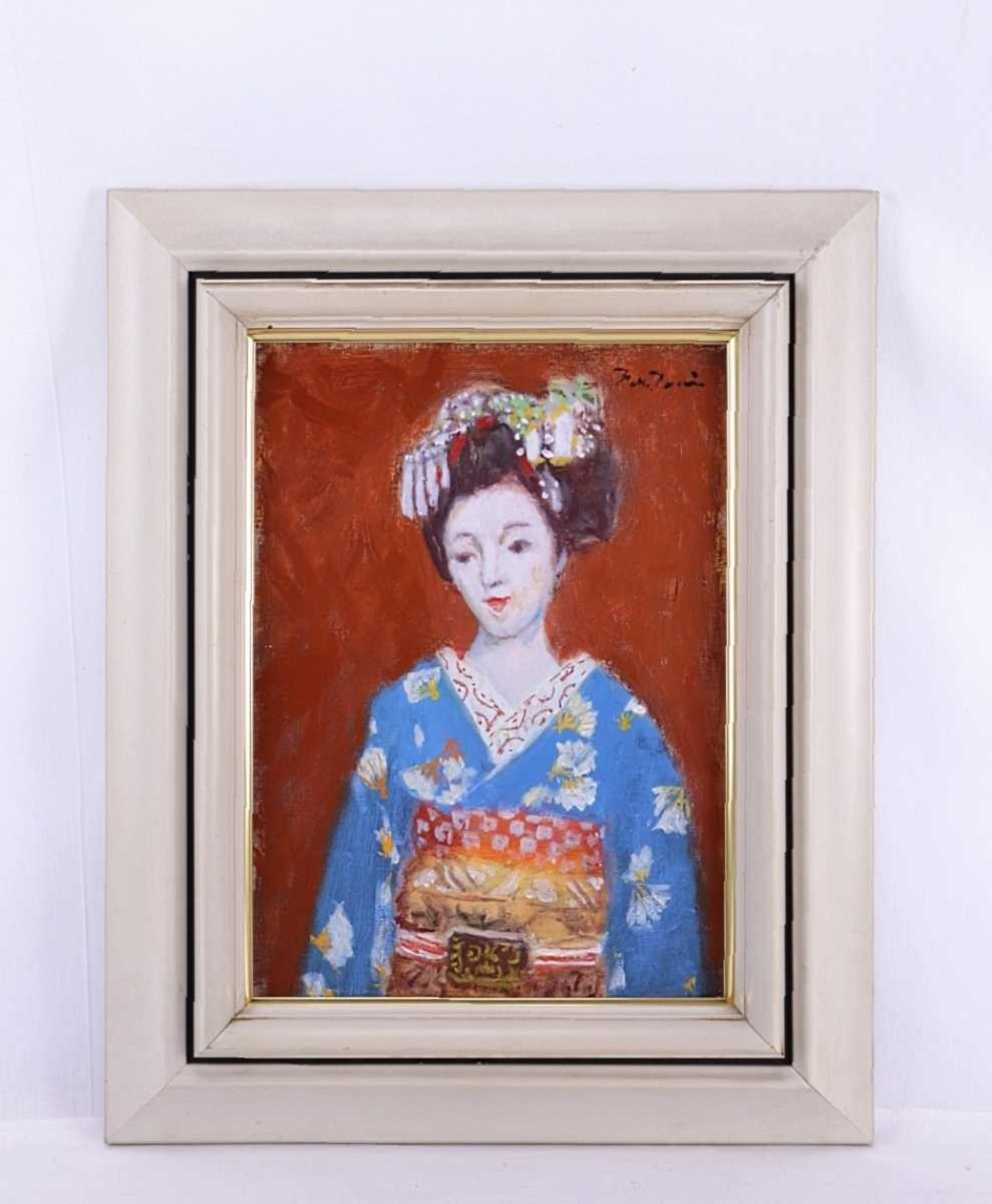 - 真作 谷福太 油彩「青衣の舞」画寸 24cm×33cm F4 大阪府出身 新世紀美術協会委員 赤松麟作に師事 清楚であどけなさ残る表情 5039