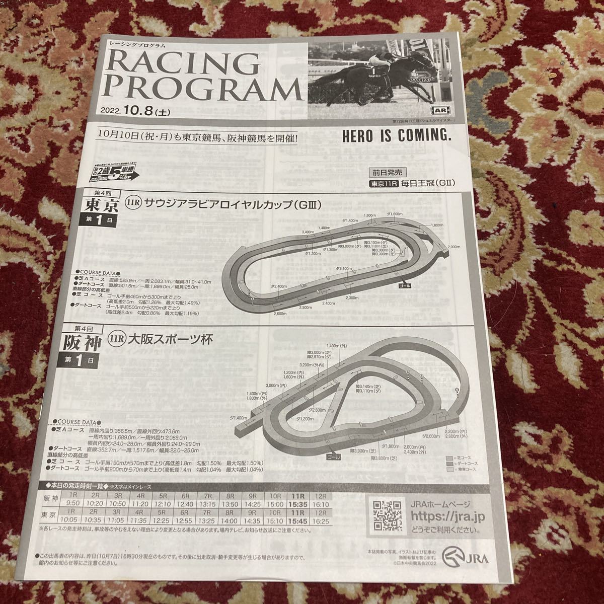 - JRAレーシングプログラム2022.10.8(土)サウジアラビアロイヤルカップ(GⅢ)、大阪スポーツ杯