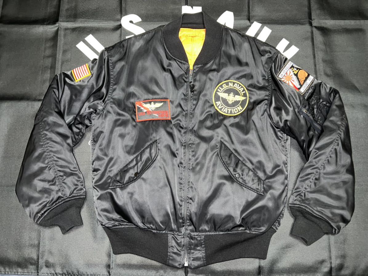 - 中古美品 made in USA flyer's men intermediate, ms-1 jacket mil-j-82790j (USAF) uss enterprise cvn-65 HOUSTON製 LARGE BLACK