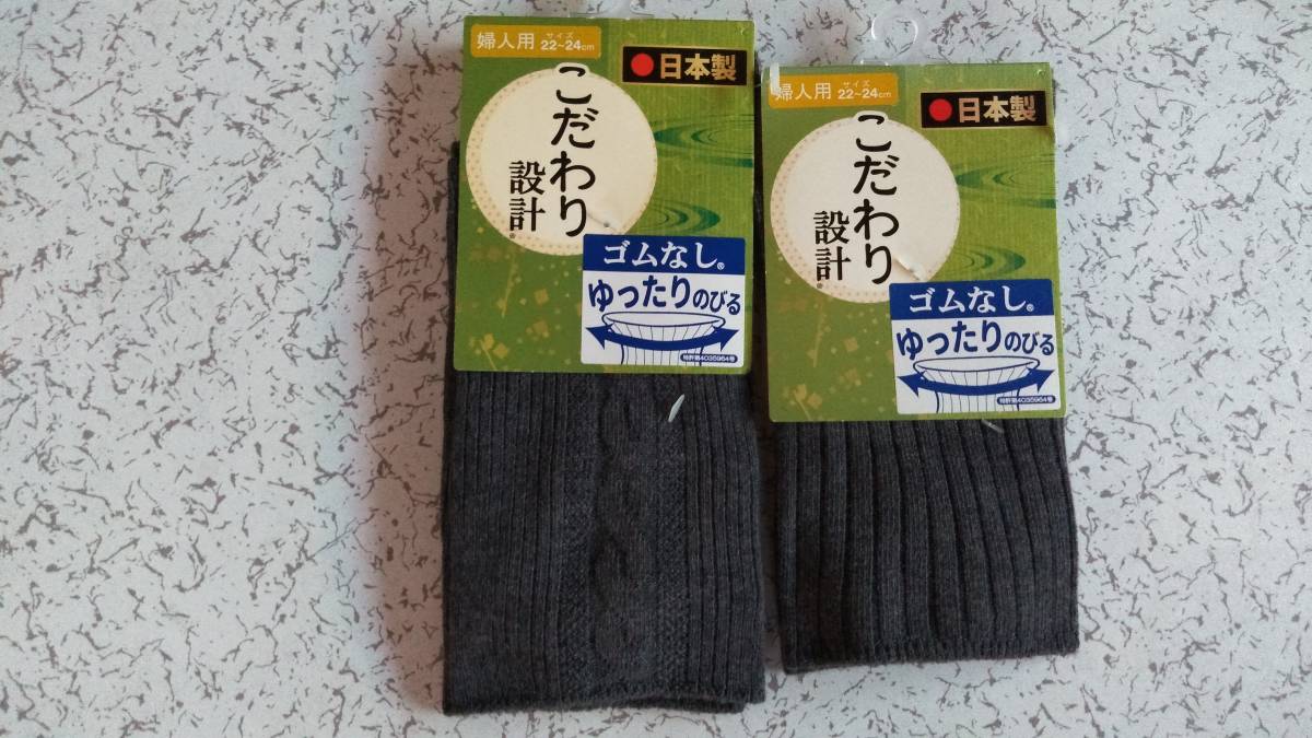 - レディース 婦人用 履き口ゆったりソックス 靴下 2足(濃いグレイ系・2種) 22~24cm 日本製