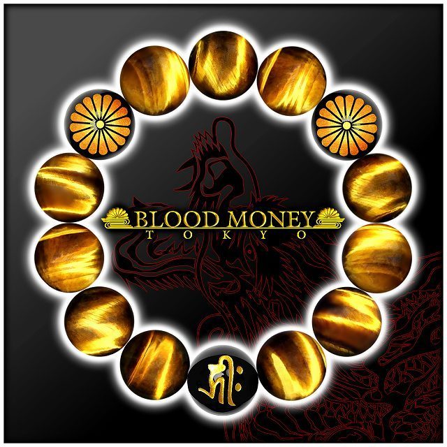 - 16mm 菊A 虎目石 タイガーアイ 梵字オニキス数珠ブレスレット 彫刻 メンズMen's 風水ホストヤクザ オラオラ系 悪羅悪羅系 ヤンキー 派手