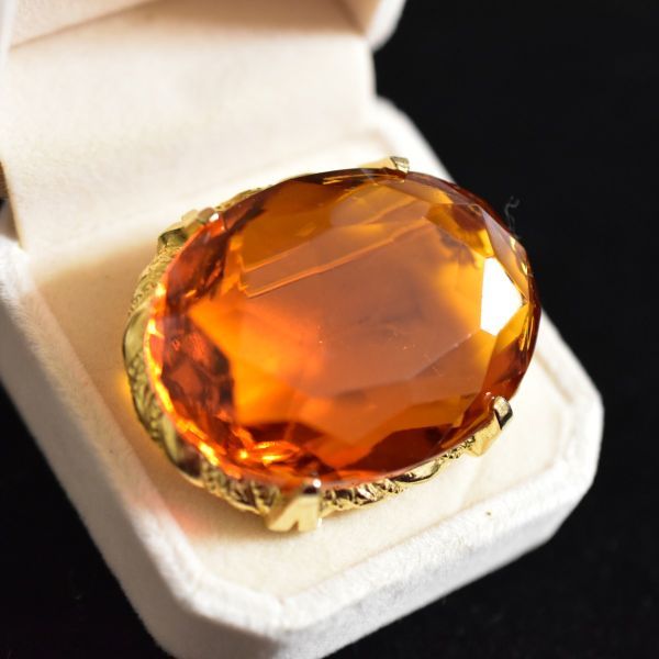 - ヴィンテージ 大型アクリルのシトリン色ブローチ