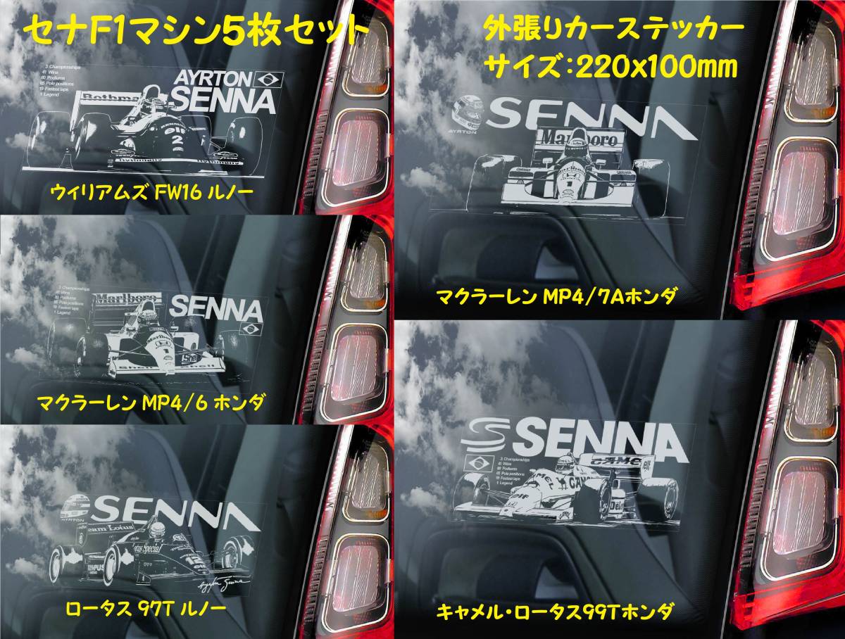- ◆期間限定値下 5枚セット アイルトン・セナ F1マシン ウィリアムズ/マクラーレン/ロータス/ホンダ/ルノー 外張り カーステッカー B1 3558