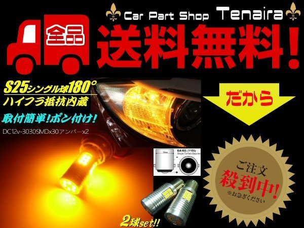 - 12v ハイフラ防止 抵抗内蔵 ウィンカー用LED Ba15s S25 アンバー オレンジ 黄色 2球セット メール便送料無料/3