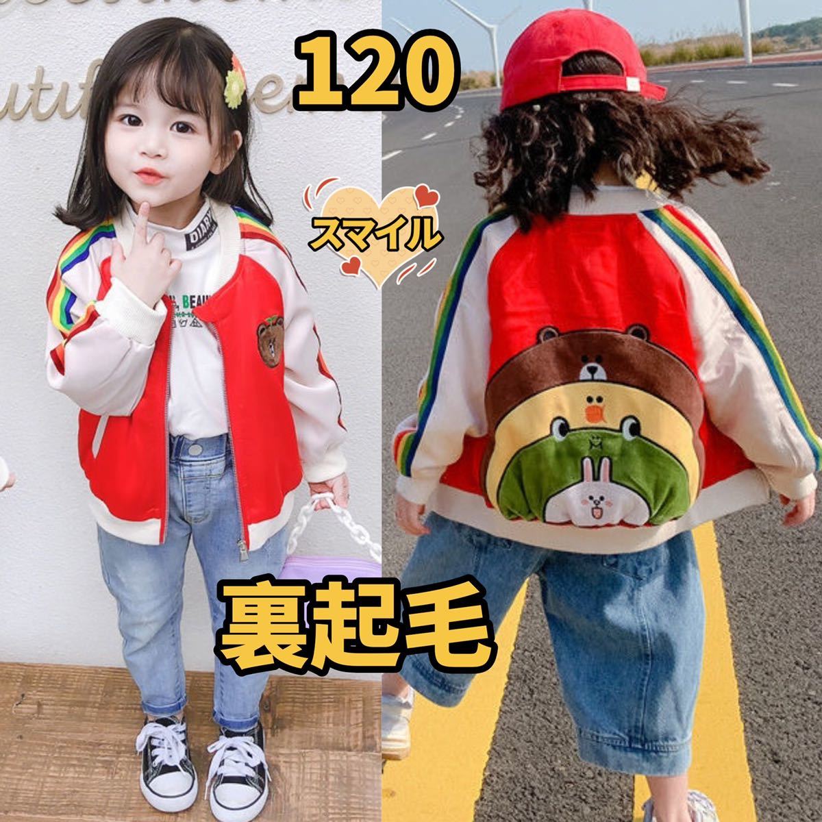- キッズジャケット 裏起毛上着 刺繍 虹ライン袖 男女兼用120