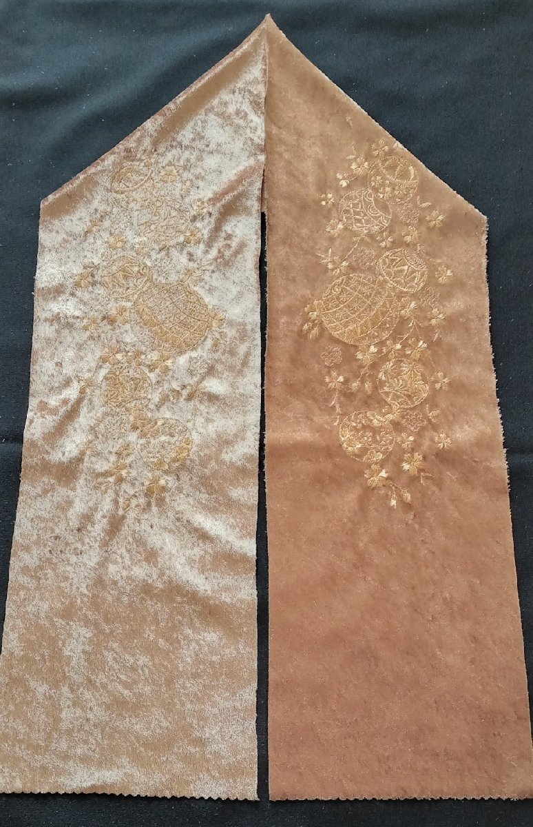 - 6953 ベロア* 刺繍半衿「金茶/手毬」-