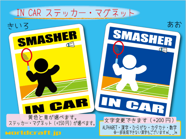 > ■_ IN CARステッカーバドミントン! 1枚販売■カラー選択ステッカー/マグネット選択可能☆おもしろ かわいい☆オリジナル シール ot